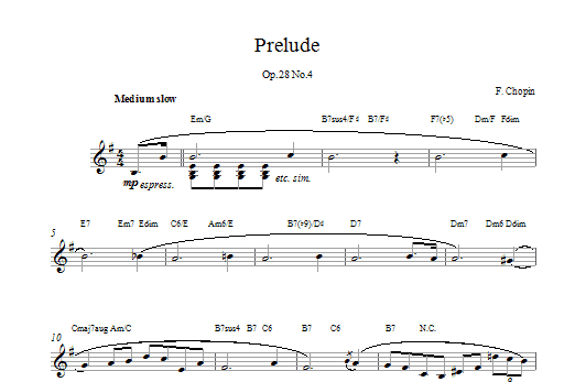 Download or print Frederic Chopin Prelude In E Minor, Op. 28, No. 4 sheet music, chords and digital score arranged for Easy Piano. This Classical score includes 2 page(s).