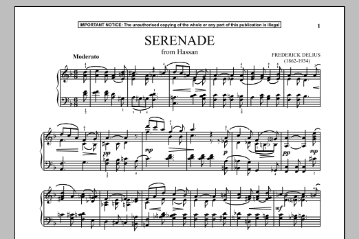 Download or print Frederick Delius Hassan, Serenade sheet music, chords and digital score arranged for Piano Solo. This Classical score includes 1 page(s).