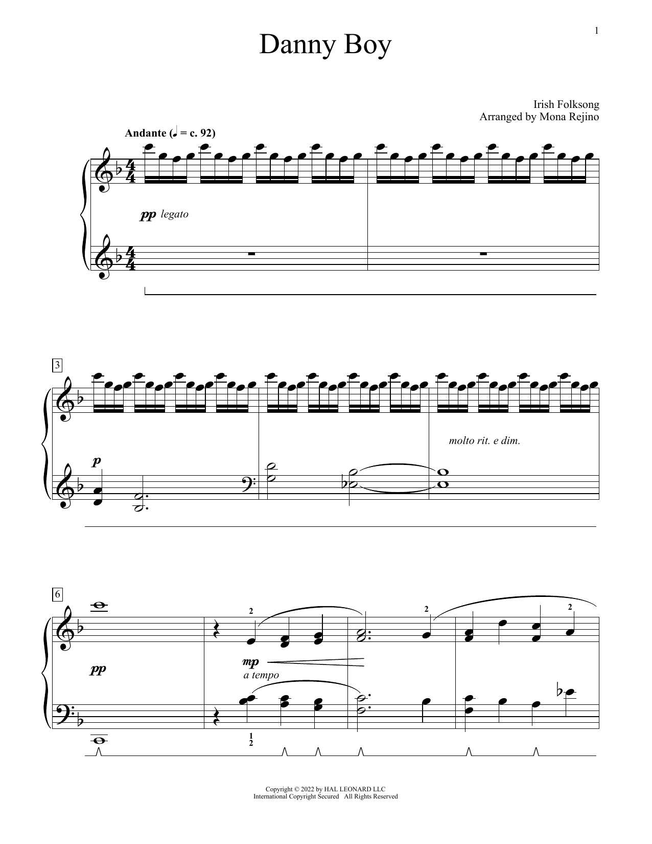 Quick facts Danny Boy (arr. Mona Rejino) about digital sheet music