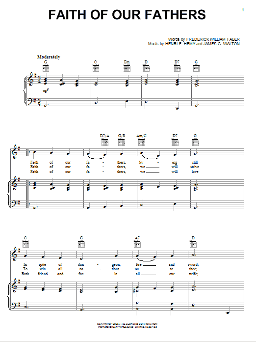Download or print Frederick William Faber Faith Of Our Fathers sheet music, chords and digital score arranged for Educational Piano. This Christian score includes 1 page(s).