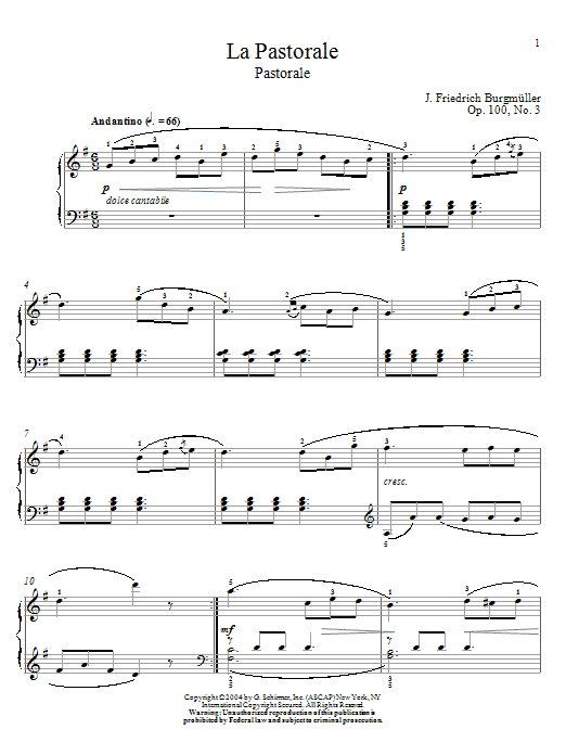 Download or print Friedrich Burgmuller Pastorale, Op. 100, No. 3 sheet music, chords and digital score arranged for Piano Solo. This Classical score includes 2 page(s).