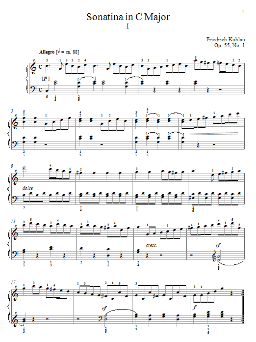 Download or print Friedrich Kuhlau Sonatina In C Major, Op. 55, No. 1 sheet music, chords and digital score arranged for Piano Solo. This Classical score includes 7 page(s).