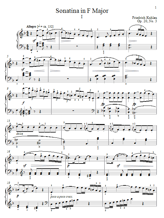 Download or print Friedrich Kuhlau Sonatina In F Major, Op. 20, No. 3 sheet music, chords and digital score arranged for Piano Solo. This Classical score includes 7 page(s).