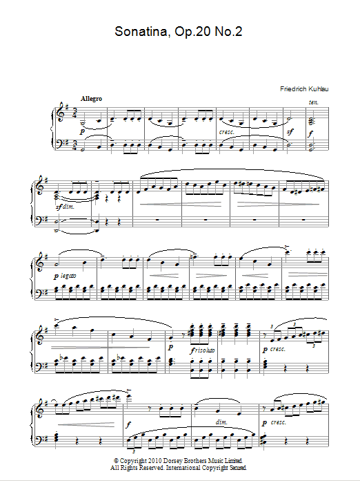 Download or print Friedrich Kuhlau Sonatina, Op. 20, No. 2 sheet music, chords and digital score arranged for Piano Solo. This Classical score includes 13 page(s).