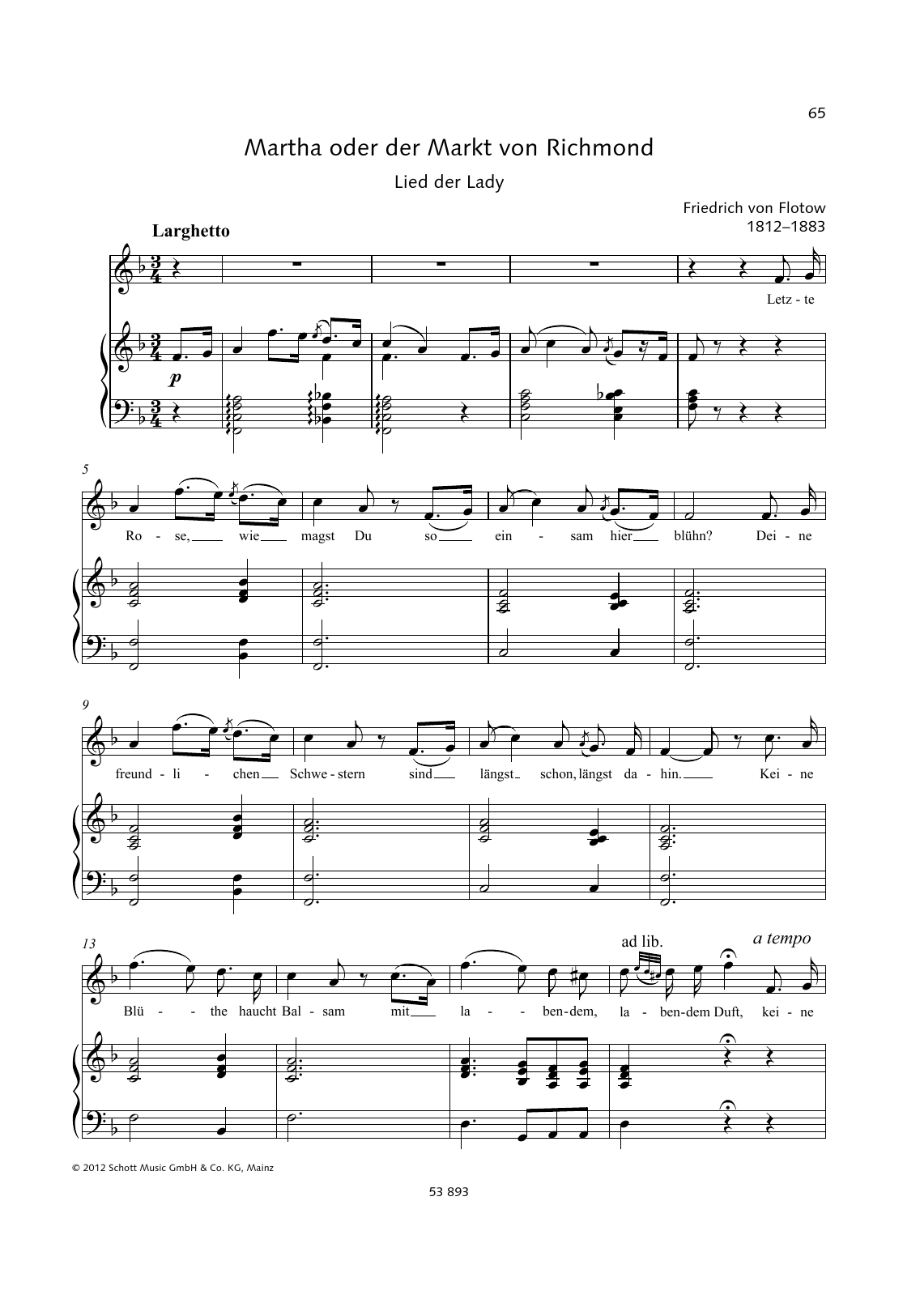 This composition is beautifuly arranged for Piano & Vocal includes 3 page(s). It is performed by Friedrich von Flotow. The style of the score is 'Classical'. Catalog SKU number of the notation is 362364.