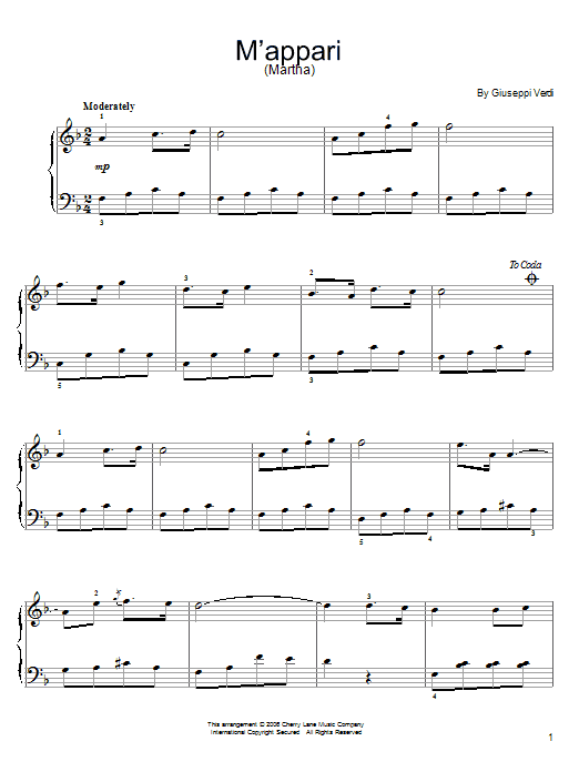 Download or print Friedrich von Flotow M'appari tutt'amor sheet music, chords and digital score arranged for Piano & Vocal. This Classical score includes 4 page(s).