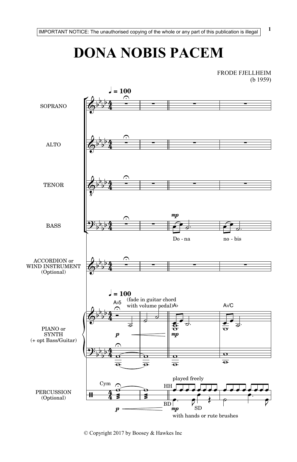 Download or print Frode Fjellheim Dona Nobis Pacem sheet music, chords and digital score arranged for SSA Choir. This Concert score includes 10 page(s).