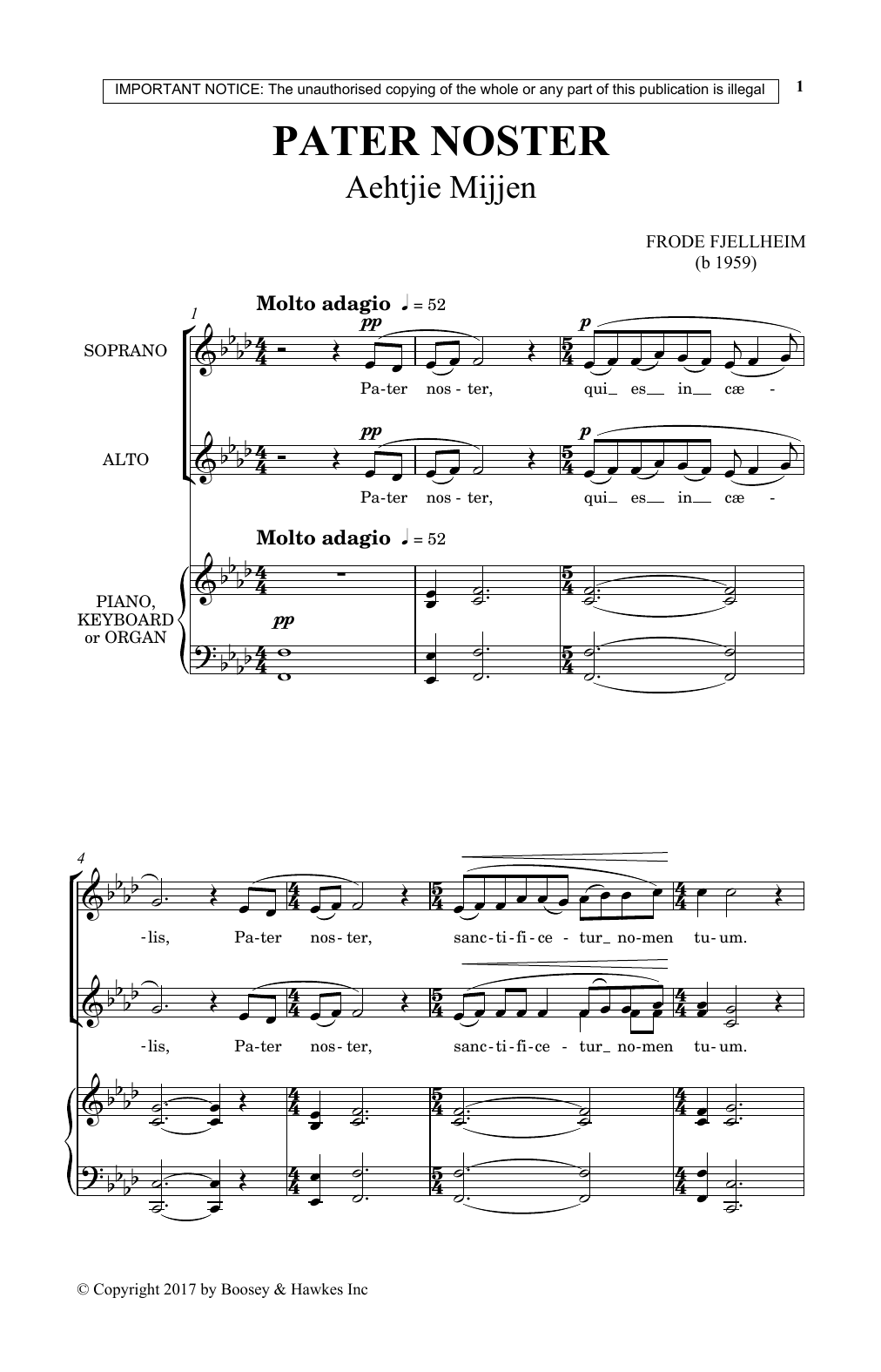 Download or print Frode Fjellheim Pater Noster sheet music, chords and digital score arranged for SSA Choir. This Concert score includes 4 page(s).