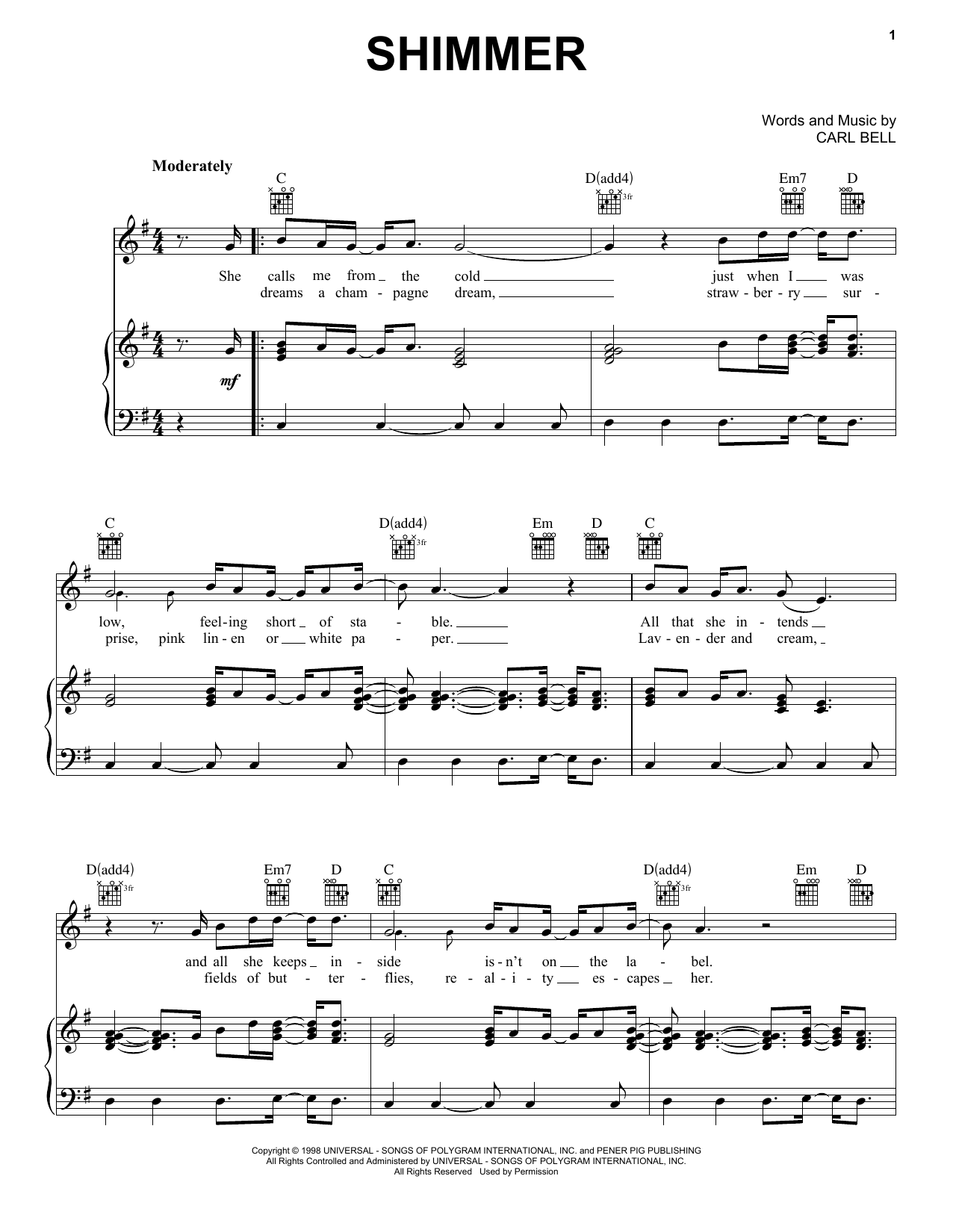 Download or print Fuel Shimmer sheet music, chords and digital score arranged for Piano, Vocal & Guitar Chords (Right-Hand Melody). This Rock score includes 5 page(s).