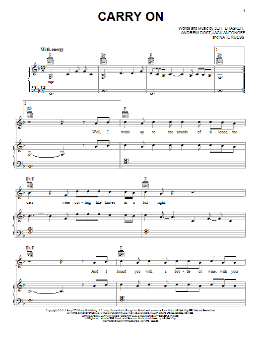Download or print fun. Carry On sheet music, chords and digital score arranged for Piano, Vocal & Guitar Chords (Right-Hand Melody). This Pop score includes 9 page(s).
