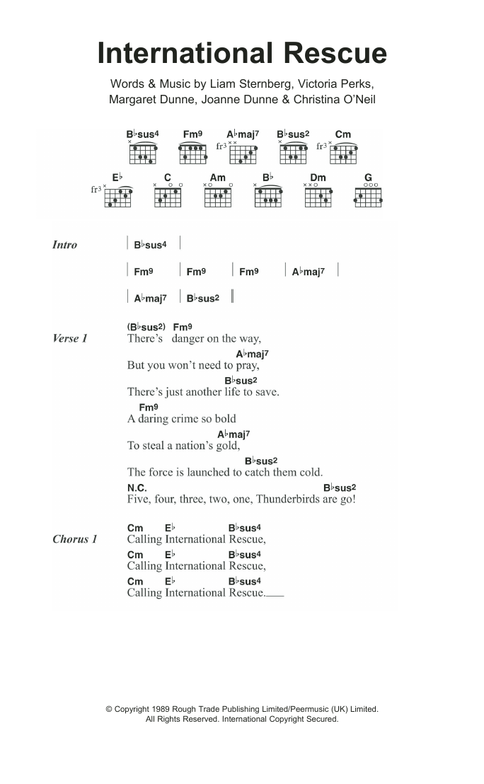 Download or print Fuzzbox International Rescue sheet music, chords and digital score arranged for Guitar Chords/Lyrics. This Pop score includes 3 page(s).