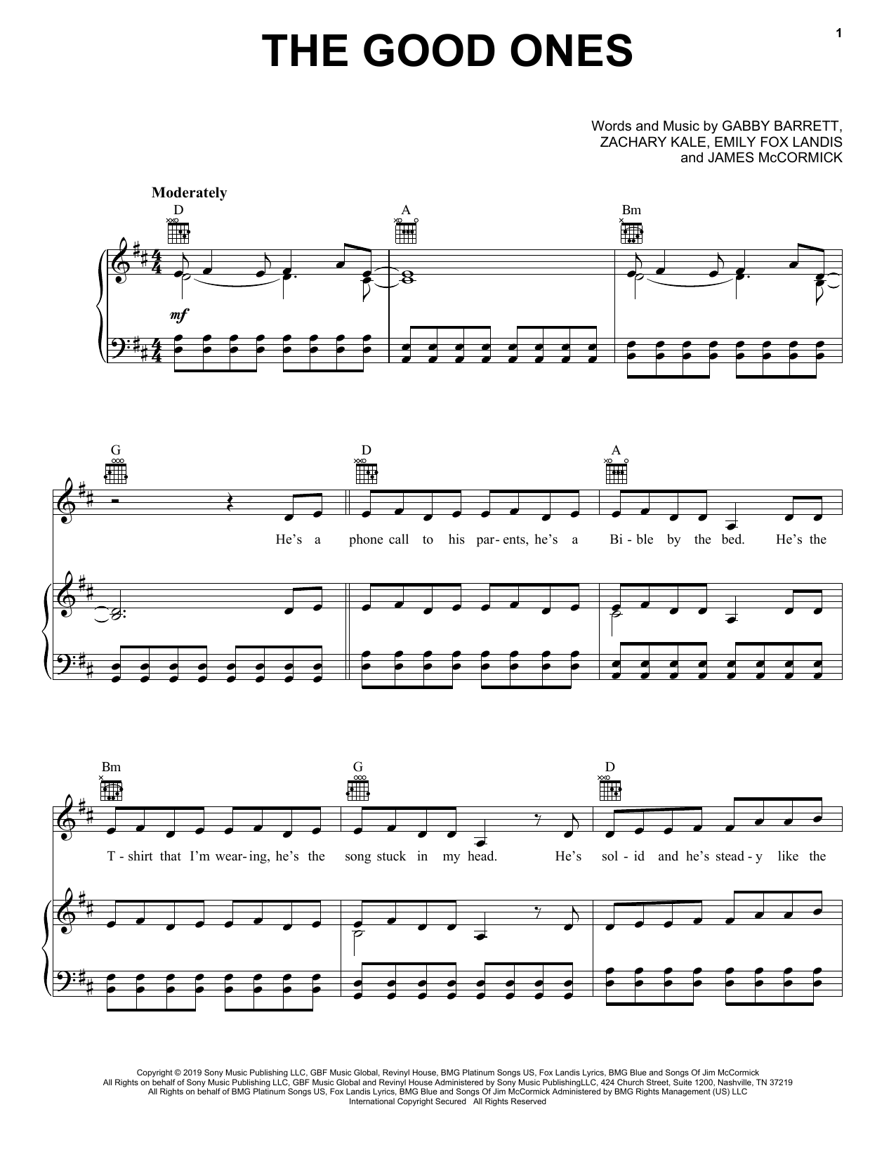 Download or print Gabby Barrett The Good Ones sheet music, chords and digital score arranged for Piano, Vocal & Guitar Chords (Right-Hand Melody). This Country score includes 7 page(s).