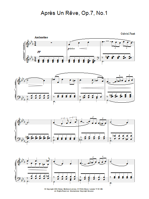 Download or print Gabriel Fauré Apres Un Reve, Op.7, No.1 sheet music, chords and digital score arranged for Piano Solo. This Classical score includes 3 page(s).