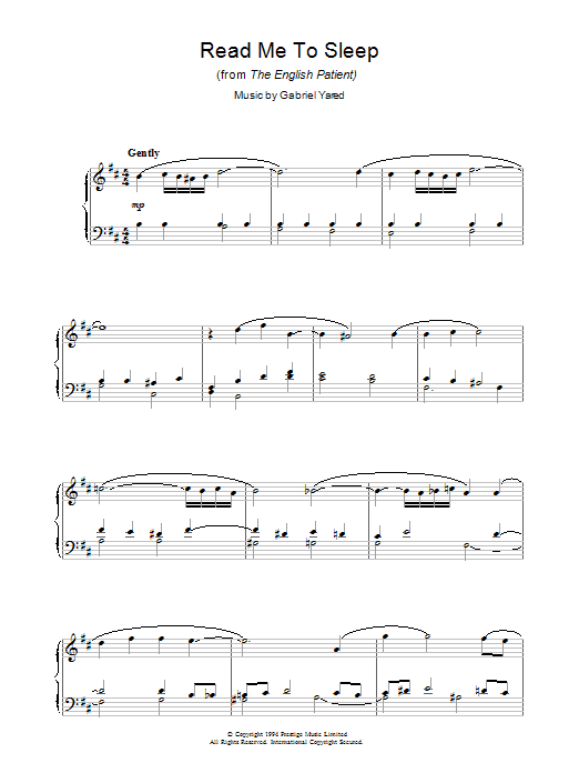 Download or print Gabriel Yared Read Me to Sleep (from The English Patient) sheet music, chords and digital score arranged for Piano Solo. This Film/TV score includes 4 page(s).