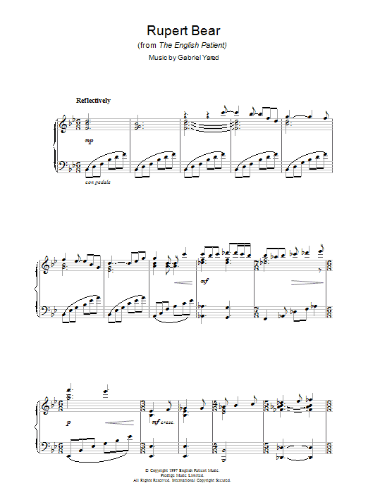 Download or print Gabriel Yared Rupert Bear (from The English Patient) sheet music, chords and digital score arranged for Piano Solo. This Film/TV score includes 2 page(s).