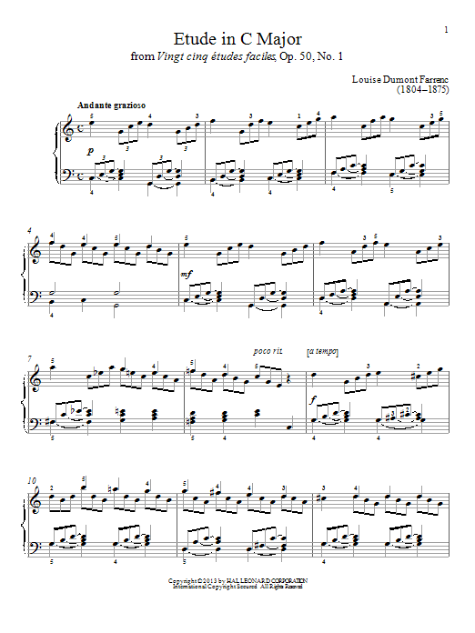 Download or print Louise Dumont Farrenc Etude In C Major sheet music, chords and digital score arranged for Piano Solo. This Classical score includes 2 page(s).