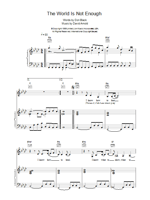 Download or print Garbage The World Is Not Enough sheet music, chords and digital score arranged for Really Easy Piano. This Pop score includes 2 page(s).