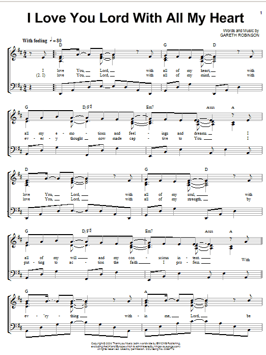 Download or print Gareth Robinson I Love You Lord sheet music, chords and digital score arranged for Piano, Vocal & Guitar Chords (Right-Hand Melody). This Christian score includes 3 page(s).