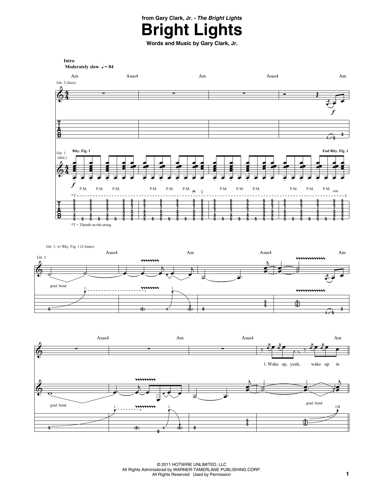 Download or print Gary Clark, Jr. Bright Lights sheet music, chords and digital score arranged for Guitar Tab. This Rock score includes 14 page(s).