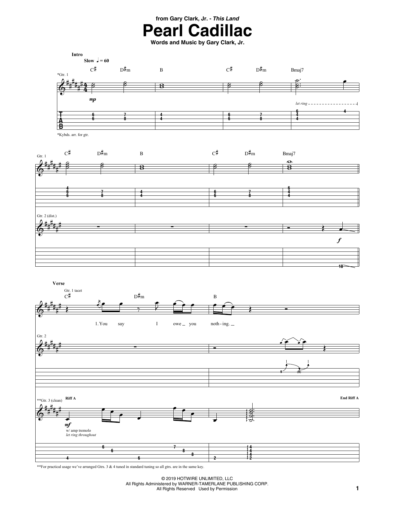 Download or print Gary Clark, Jr. Pearl Cadillac sheet music, chords and digital score arranged for Guitar Tab. This Rock score includes 9 page(s).