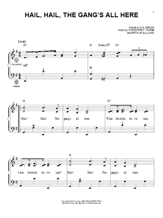 Download or print Arthur Sullivan Hail, Hail, The Gang's All Here (arr. Gary Meisner) sheet music, chords and digital score arranged for Accordion. This Traditional score includes 2 page(s).