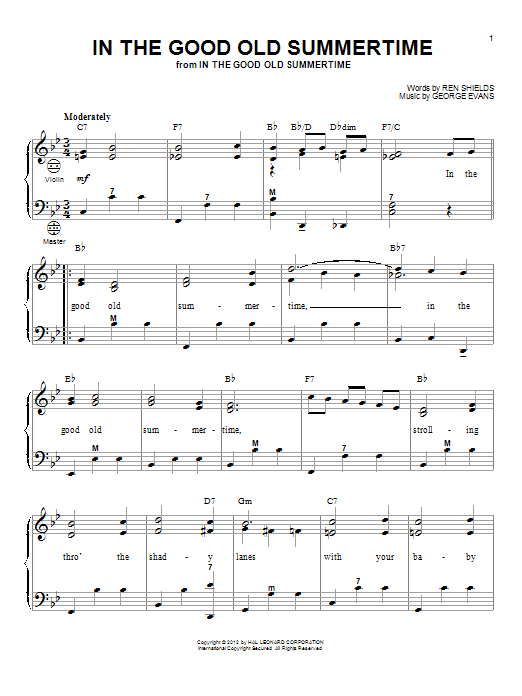 Quick facts In The Good Old Summertime about digital sheet music