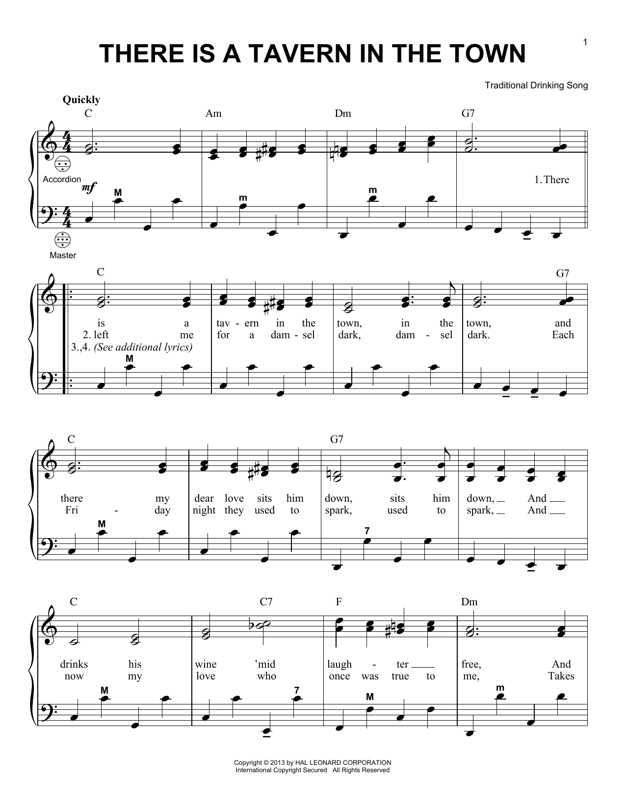 Download or print Gary Meisner There Is A Tavern In The Town sheet music, chords and digital score arranged for Accordion. This Folk score includes 3 page(s).