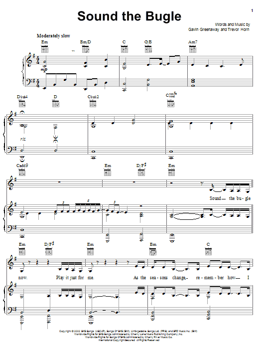 Download or print Gavin Greenaway Sound The Bugle sheet music, chords and digital score arranged for Piano, Vocal & Guitar Chords (Right-Hand Melody). This Children score includes 5 page(s).