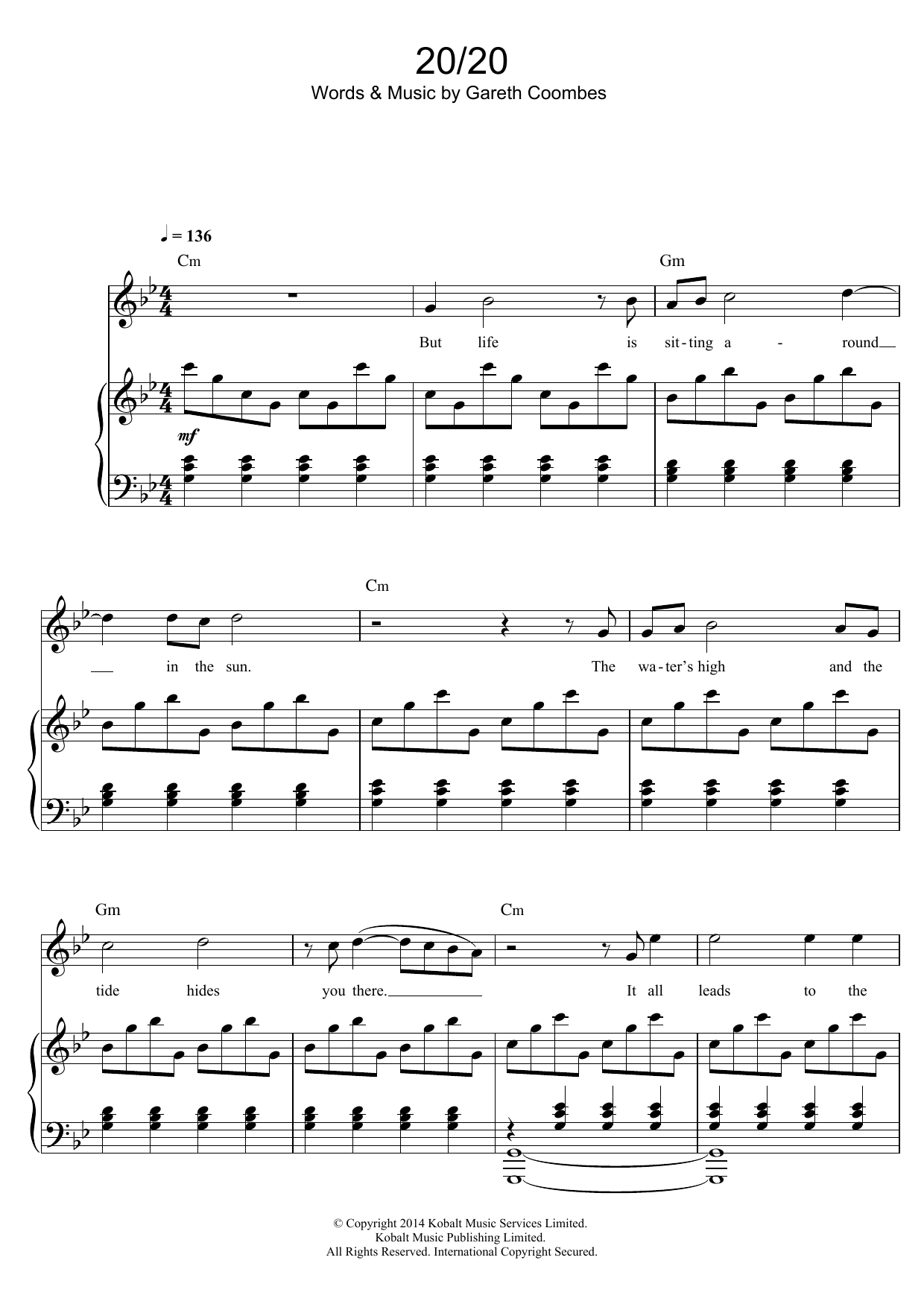 Download or print Gaz Coombes 20/20 sheet music, chords and digital score arranged for Piano & Vocal. This Alternative score includes 10 page(s).