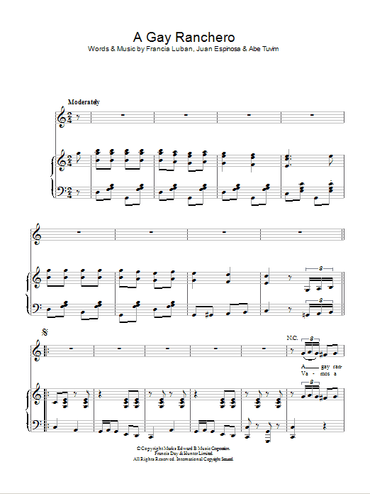 Download or print Gene Autry A Gay Ranchero sheet music, chords and digital score arranged for Piano, Vocal & Guitar Chords. This Country score includes 4 page(s).