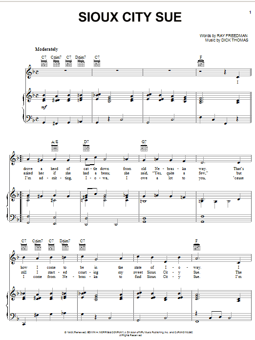 Quick facts Sioux City Sue about digital sheet music