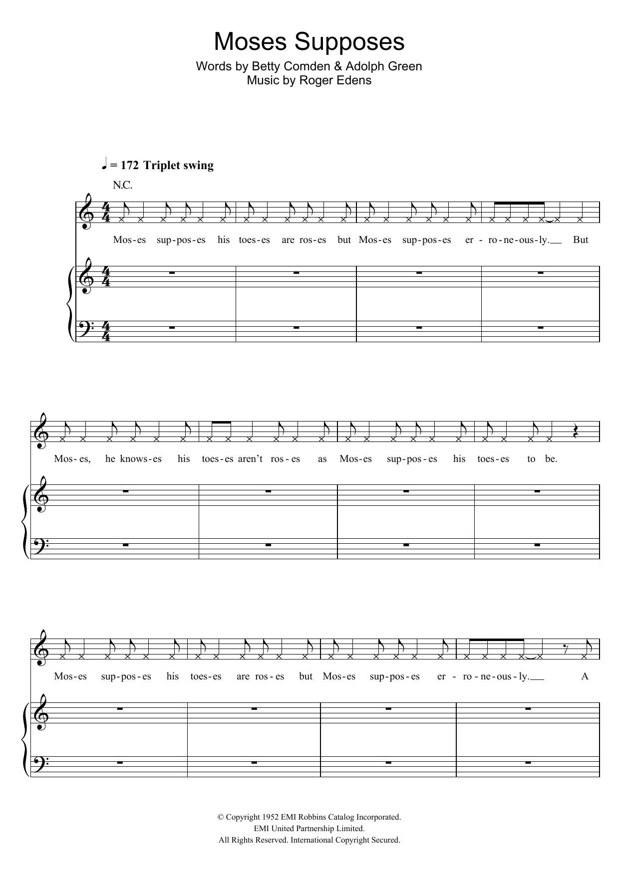 Download or print Gene Kelly Moses Supposes sheet music, chords and digital score arranged for Piano, Vocal & Guitar Chords. This Film/TV score includes 4 page(s).
