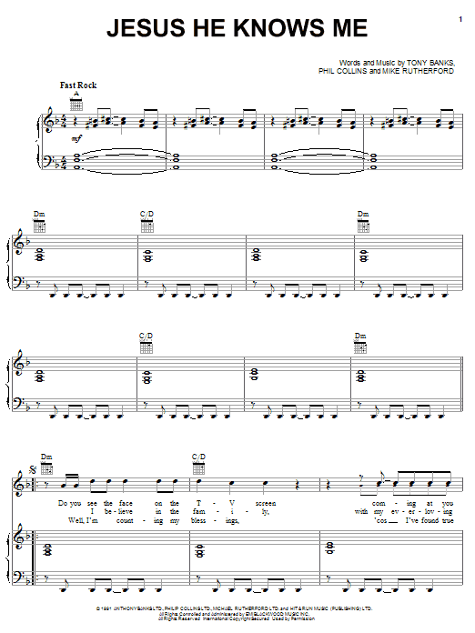 Download or print Genesis Jesus He Knows Me sheet music, chords and digital score arranged for Piano, Vocal & Guitar Chords (Right-Hand Melody). This Pop score includes 7 page(s).