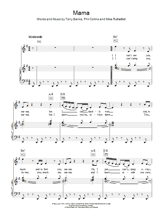 Download or print Genesis Mama sheet music, chords and digital score arranged for Piano, Vocal & Guitar Chords (Right-Hand Melody). This Rock score includes 6 page(s).