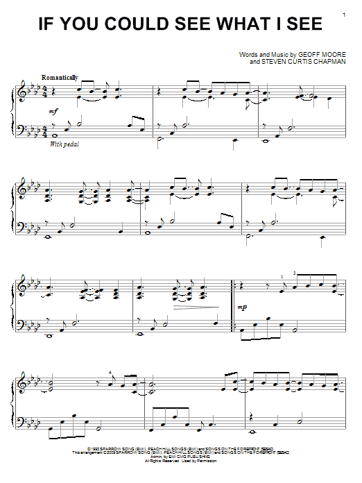 Download or print Geoff Moore & The Distance If You Could See What I See sheet music, chords and digital score arranged for Piano Solo. This Christian score includes 6 page(s).