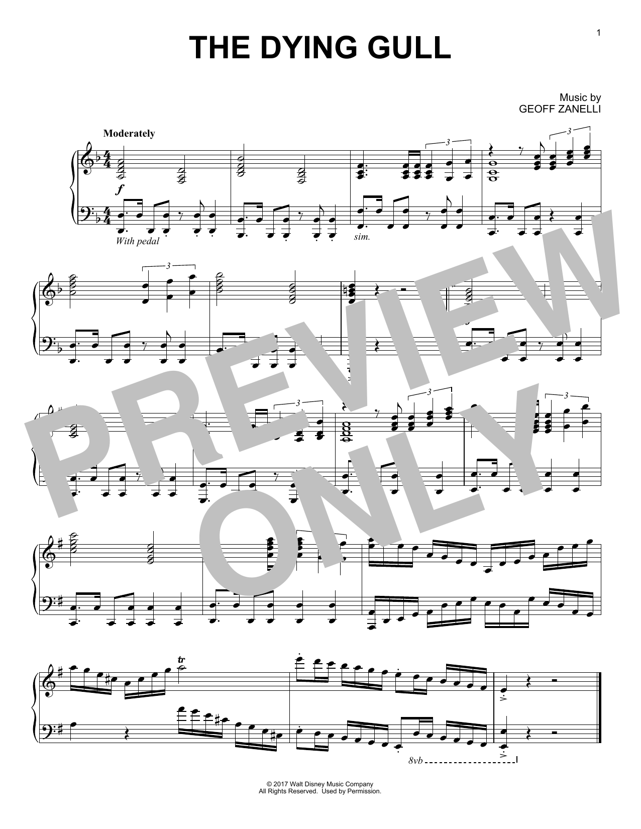Download or print Geoff Zanelli The Dying Gull sheet music, chords and digital score arranged for Piano Solo. This Disney score includes 1 page(s).