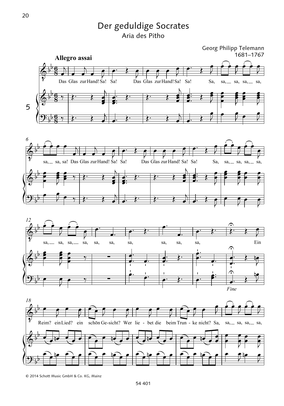 This composition is beautifuly arranged for Piano & Vocal includes 2 page(s). It is performed by Georg Philipp Telemann. The style of the score is 'Classical'. Catalog SKU number of the notation is 364107.