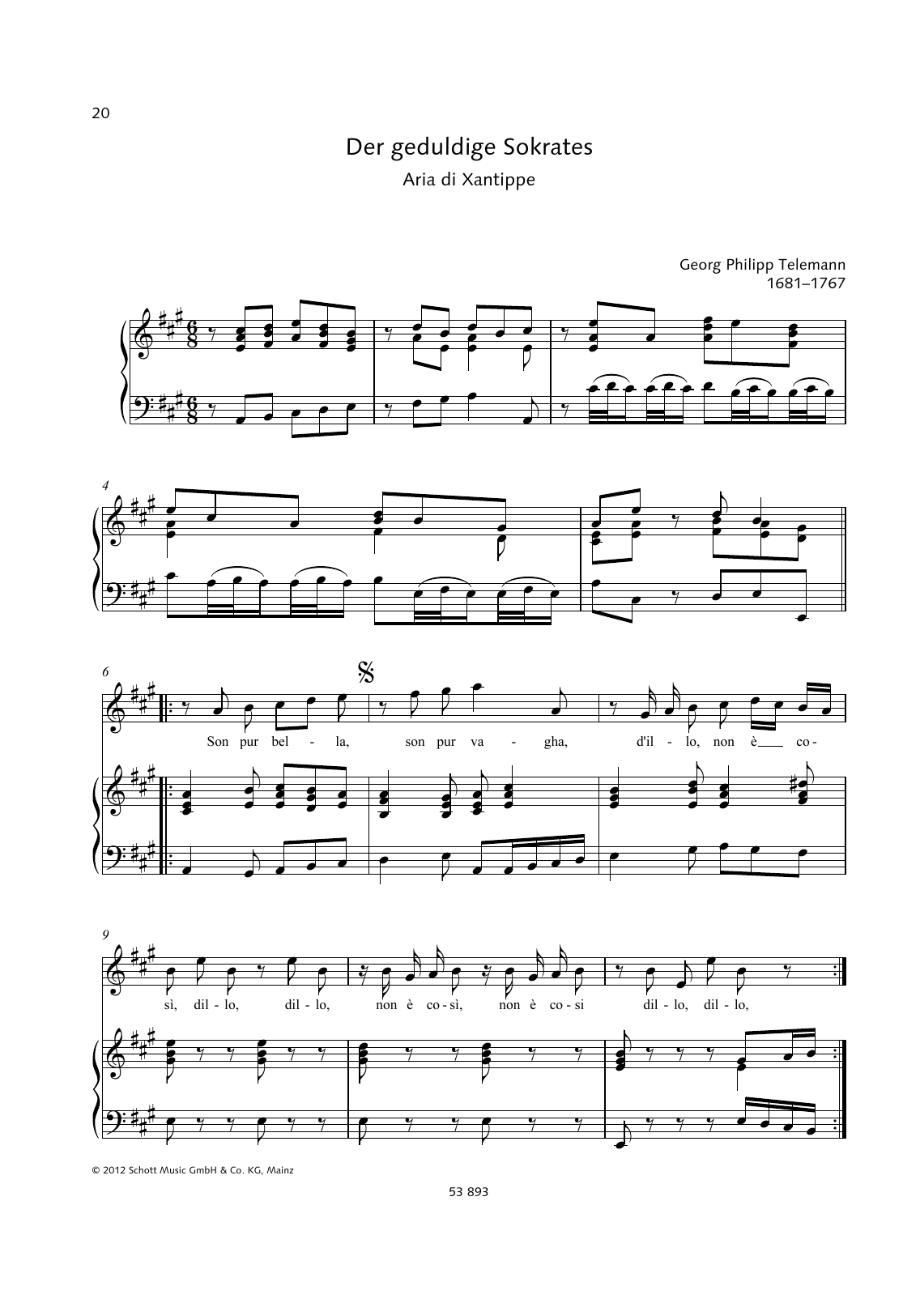 This composition is beautifuly arranged for Piano & Vocal includes 3 page(s). It is performed by Georg Philipp Telemann. The style of the score is 'Classical'. Catalog SKU number of the notation is 362766.