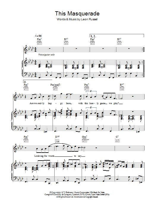 Download or print George Benson This Masquerade sheet music, chords and digital score arranged for Keyboard Transcription. This Pop score includes 9 page(s).