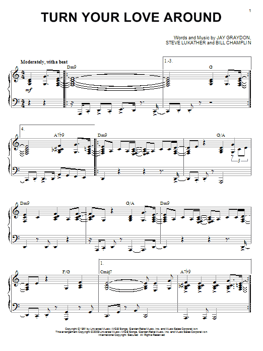 Download or print George Benson Turn Your Love Around (arr. Larry Moore) sheet music, chords and digital score arranged for Piano Solo. This Jazz score includes 4 page(s).