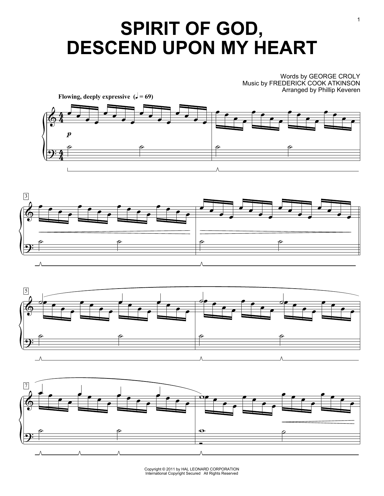Download or print George Croly Spirit Of God, Descend Upon My Heart [Classical version] (arr. Phillip Keveren) sheet music, chords and digital score arranged for Piano Solo. This Christian score includes 5 page(s).