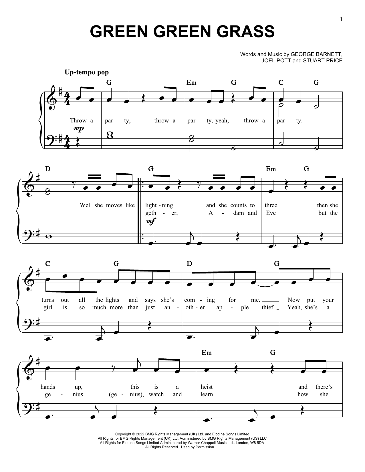 Download or print George Ezra Green Green Grass sheet music, chords and digital score arranged for Piano, Vocal & Guitar Chords (Right-Hand Melody). This Pop score includes 5 page(s).