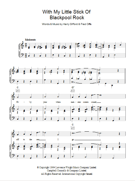 Download or print George Formby With My Little Stick Of Blackpool Rock sheet music, chords and digital score arranged for Piano, Vocal & Guitar Chords. This Standards score includes 5 page(s).