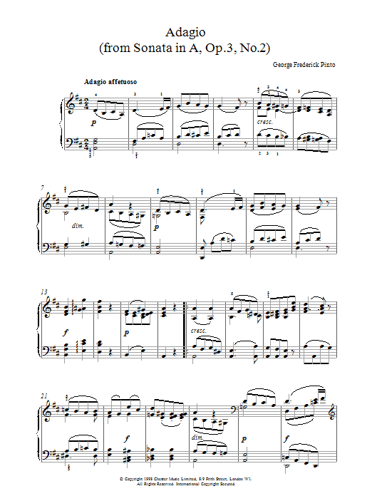 Download or print G.F Pinto Adagio Op3 No2 sheet music, chords and digital score arranged for Piano Solo. This Classical score includes 5 page(s).