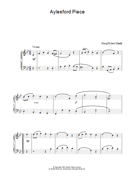Download or print George Frideric Handel Aylesford Piece sheet music, chords and digital score arranged for Piano Solo. This Classical score includes 2 page(s).