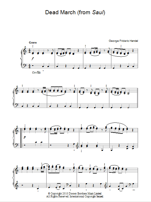 Download or print George Frideric Handel Dead March (from Saul) sheet music, chords and digital score arranged for Easy Piano. This Classical score includes 2 page(s).