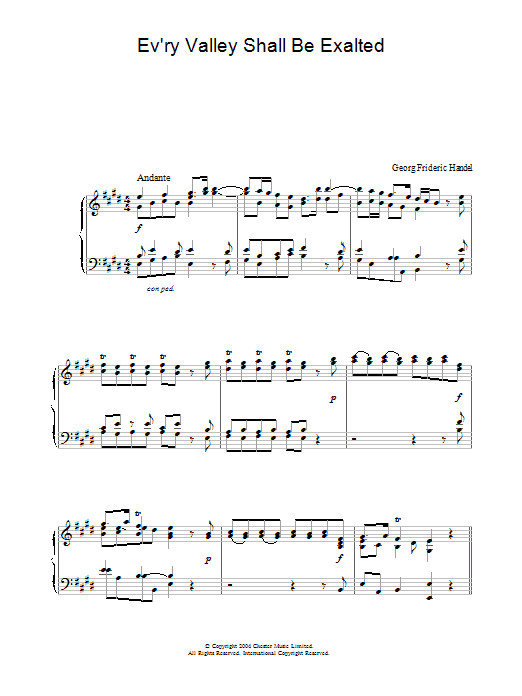 Download or print George Frideric Handel Ev'ry Valley Shall Be Exalted sheet music, chords and digital score arranged for SATB Choir. This Classical score includes 5 page(s).