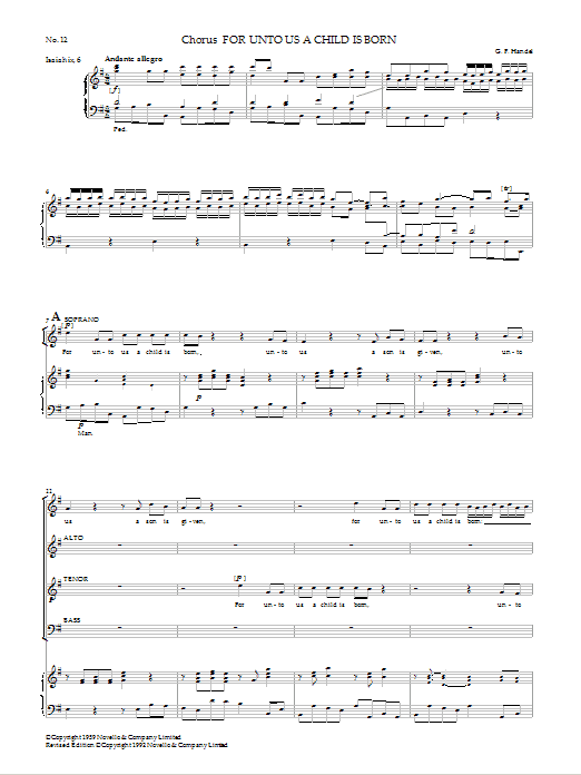 Download or print George Frideric Handel For Unto Us A Child Is Born sheet music, chords and digital score arranged for SATB Choir. This Classical score includes 10 page(s).