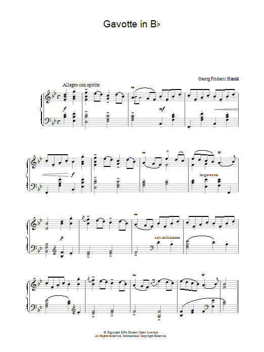 Download or print George Frideric Handel Gavotte In B Flat sheet music, chords and digital score arranged for Easy Piano. This Classical score includes 6 page(s).