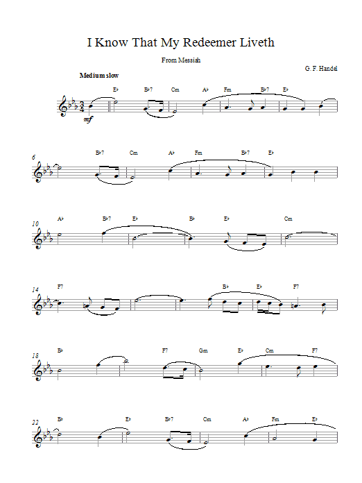 Download or print George Frideric Handel I Know That My Redeemer Liveth (from Messiah) sheet music, chords and digital score arranged for Easy Piano. This Classical score includes 3 page(s).